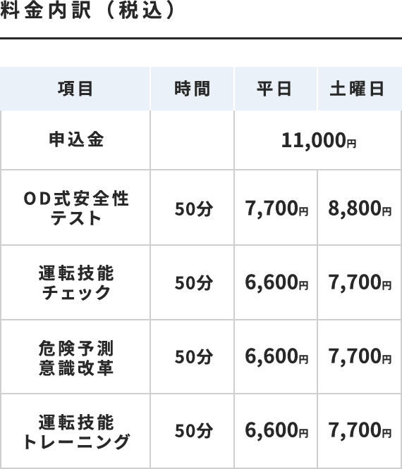 - コース料金には申込金を含みます。【普通車:11,000円(税込)二輪車:16,500円(税込)】